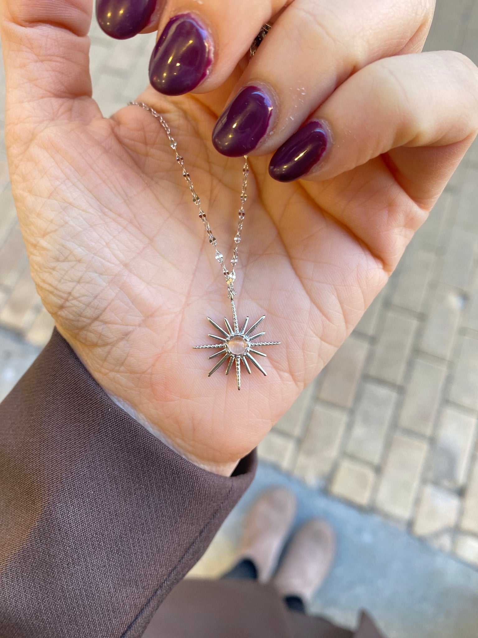 Precioso collar en forma de estrella con piedra natural central montado en cadena estilo cobra.