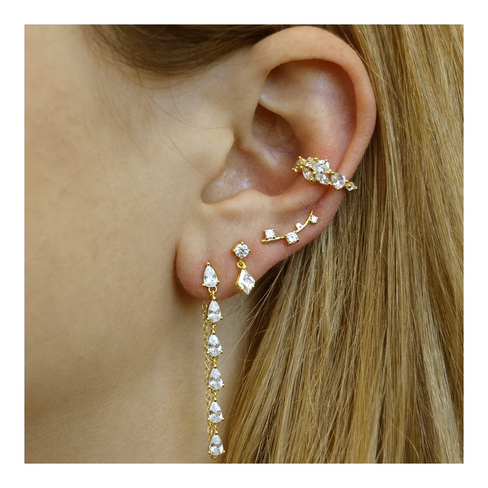 Pendiente piercing trepador para oreja disponible en plata de primera ley y plata 925 bañada en oro.