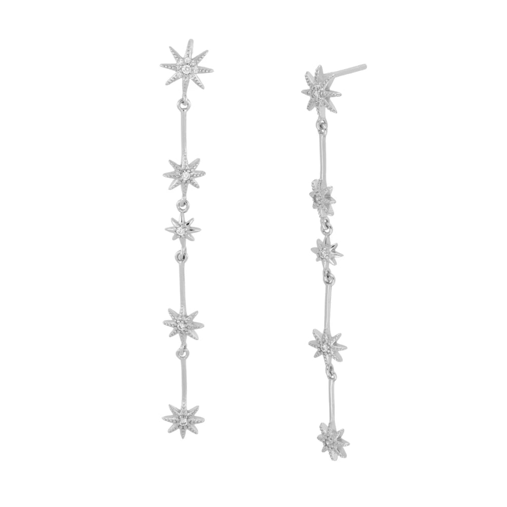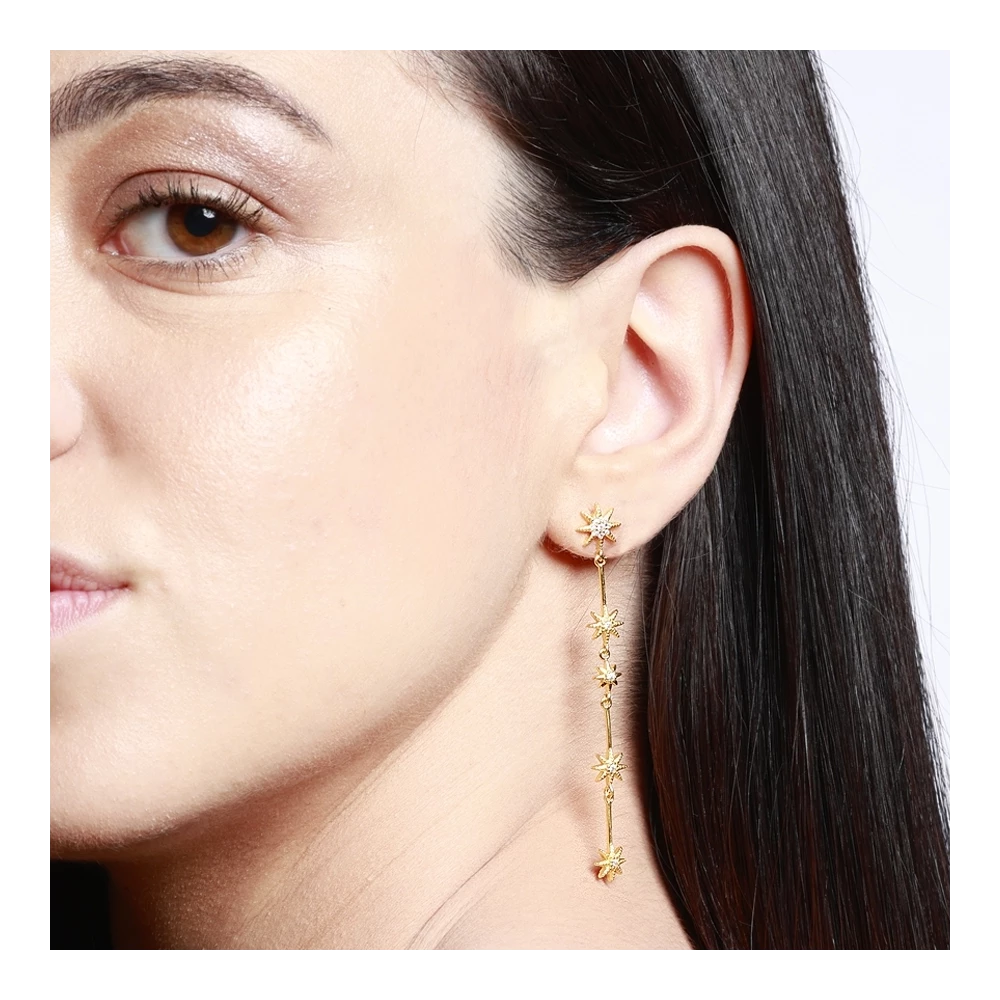 Preciosos Pendientes largos en plata de primera ley y motivos de estrellas con circonitas.