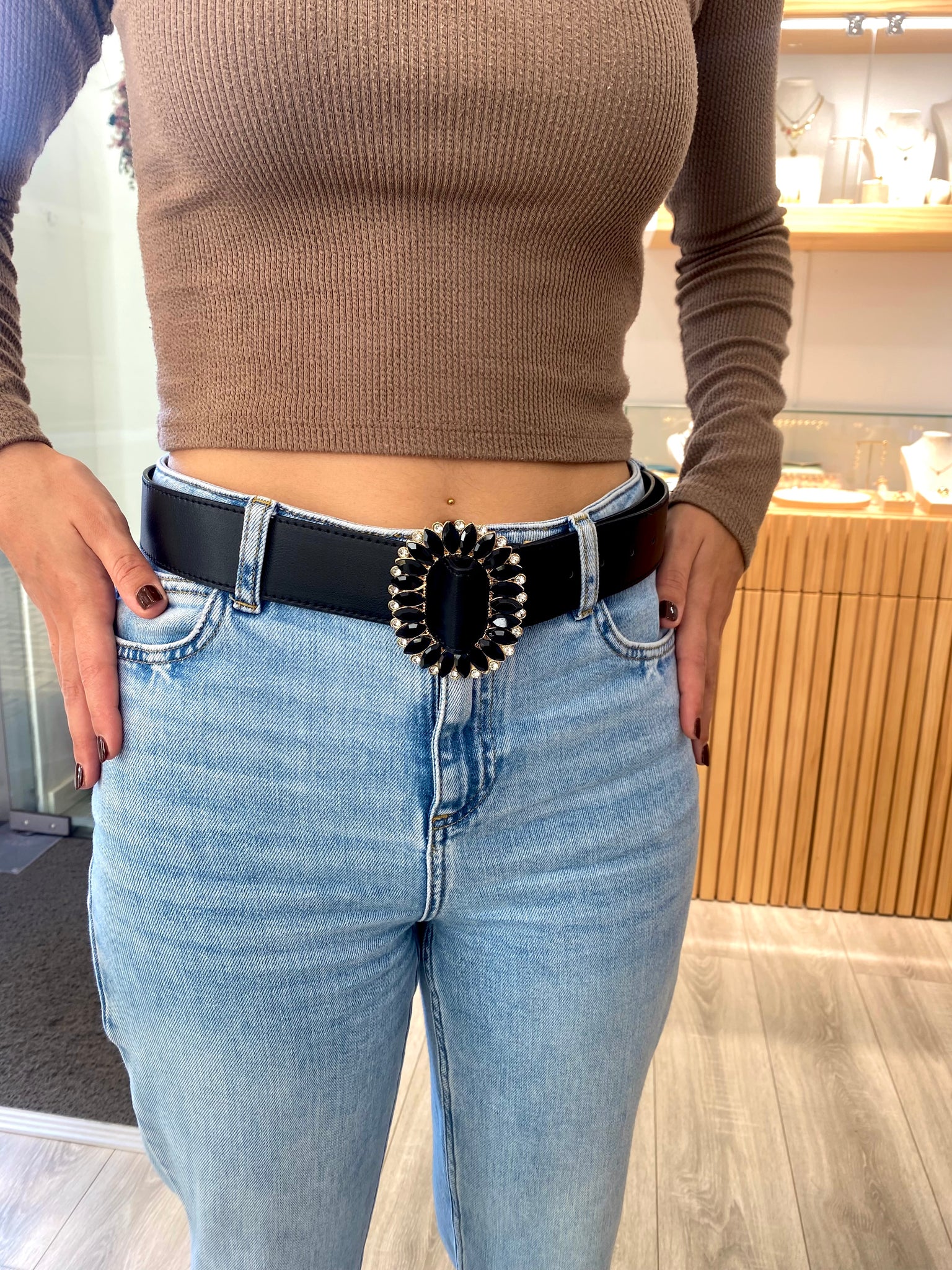 Precioso cinturón de polipiel en negro con una hebilla preciosa que le dará el toque perfecto a cualquier look.