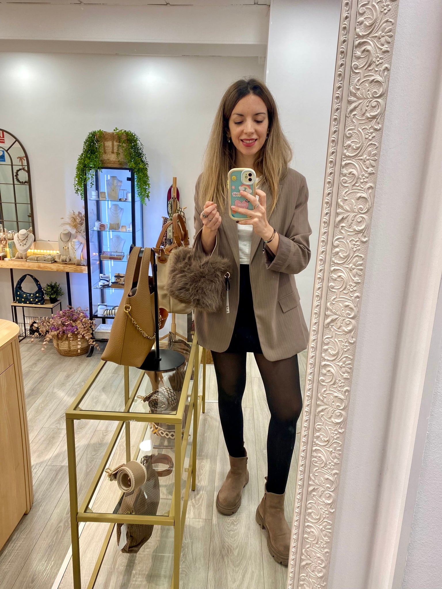 Bolso de pelito tipo peluche con doble correa.